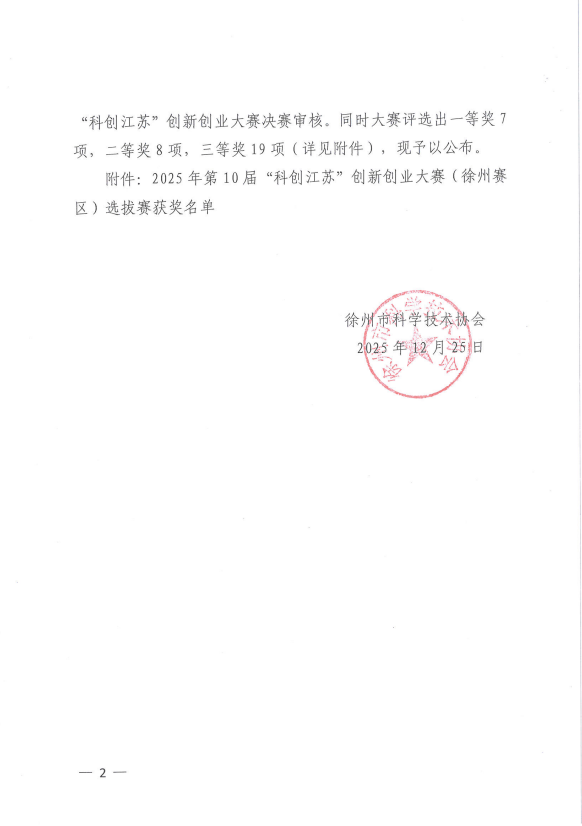 晋铁科技集团获得2025年第10届“科创江苏”创新创业大赛徐州选拔赛一等奖